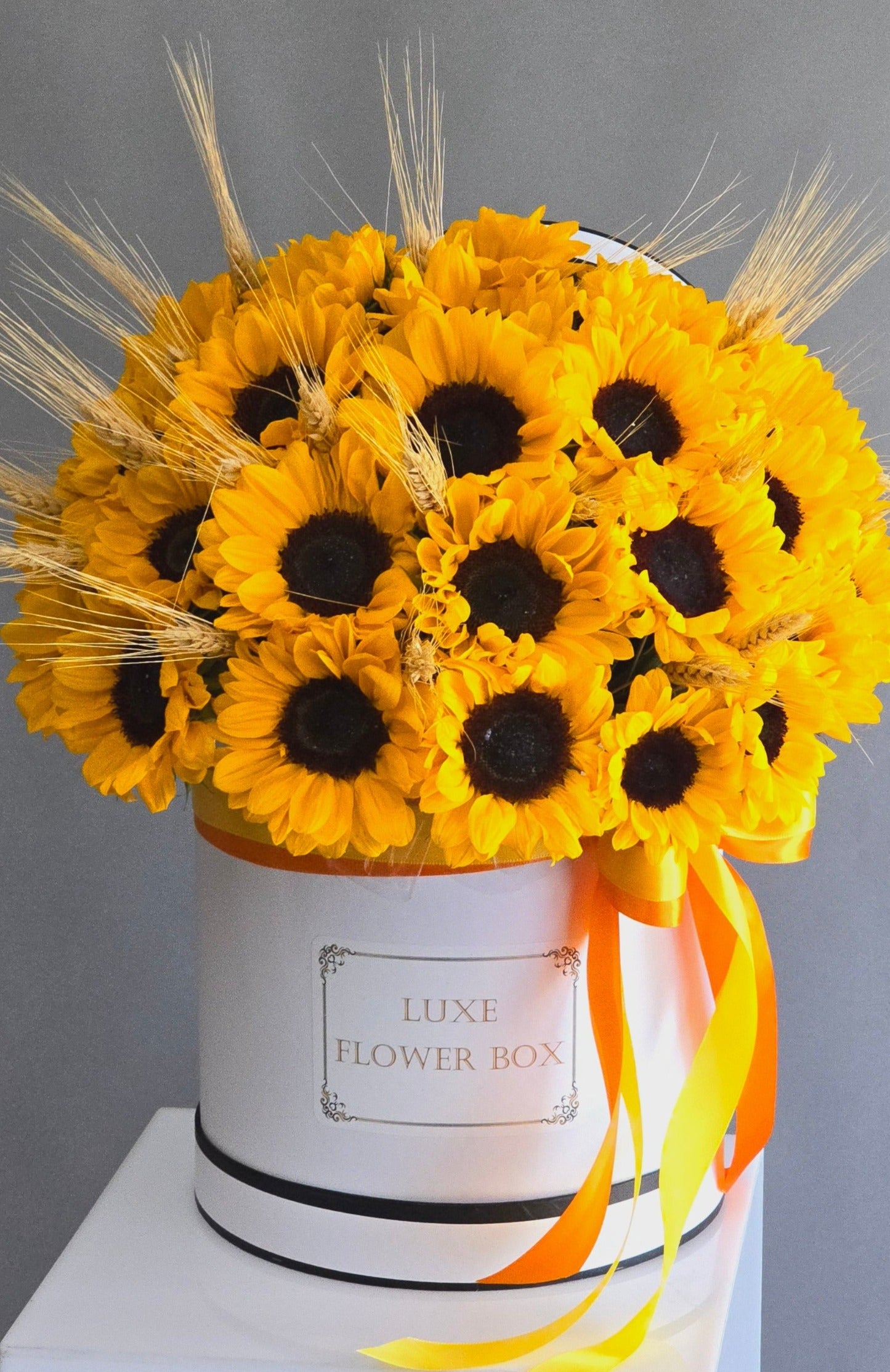 Brighten any occasion with our enchanting “Sunflower and Wheat” arrangement from Luxe Flower Box. Sunflowers, with their vibrant petals and commanding presence, evoke feelings of warmth and happiness. This arrangement showcases the sunflower’s captivating beauty, radiating positivity. Perfect for celebrations, birthdays, or simply bringing a touch of sunshine to someone’s day. With a carefully curated selection of complementary blooms, “Sunflower and Wheat” is a heartfelt gift that embodies the joy of sunflowers in a luxurious way.